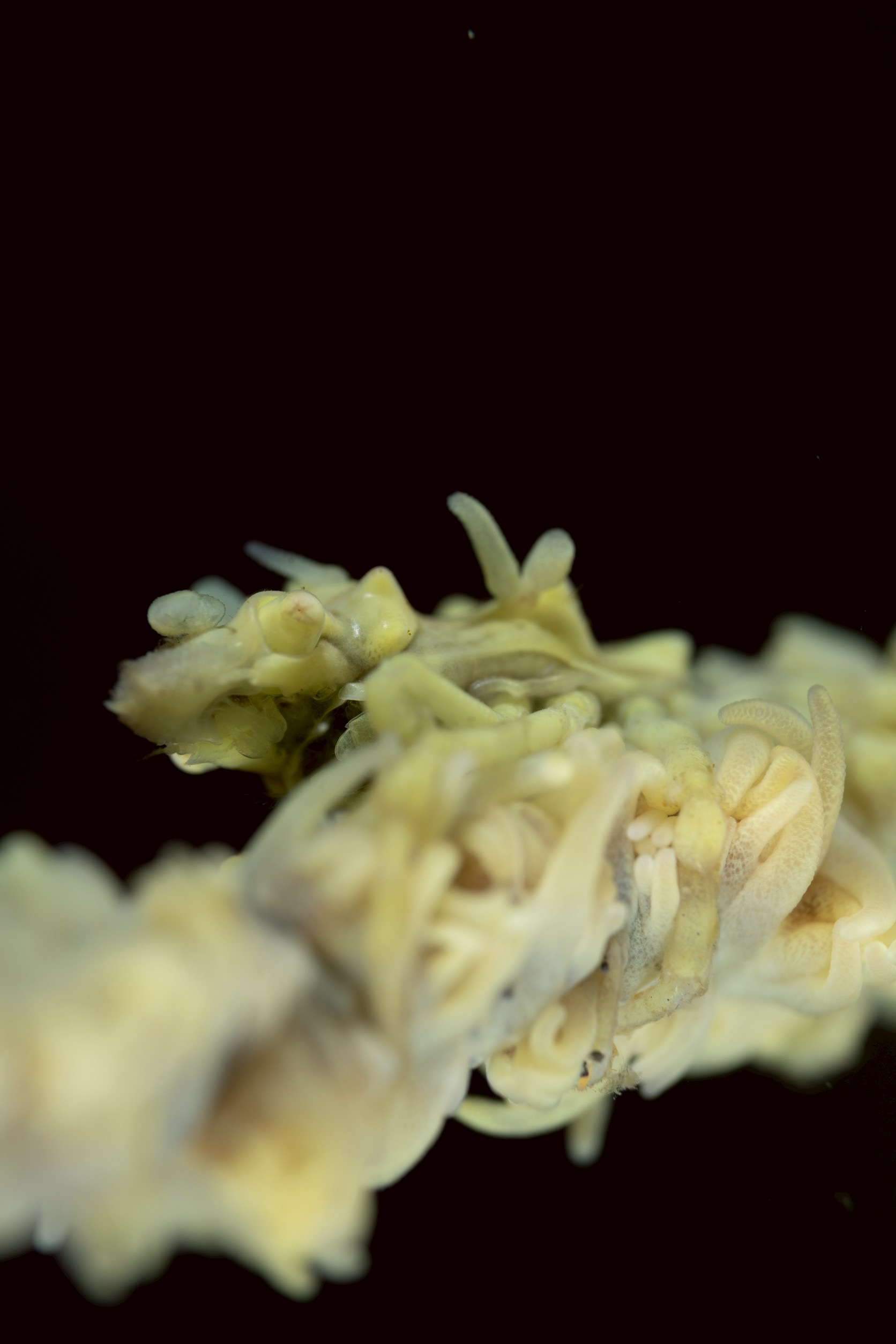 まずは〜ムチカラマツにしがみついてるイボイソバナガニ